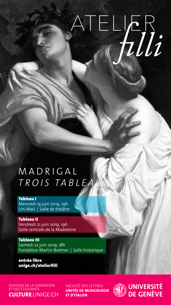 Séminaire expérimental sur le madrigal organisé par Mme Giulia Riili, l’Atelier Filli a vu débattre des spécialistes et des étudiant-e-s en disciplines diverses. Il s’agissait de reconstruire une partie de l’imaginaire de l’époque de la Renaissance, à travers le fil conducteur de la musique.